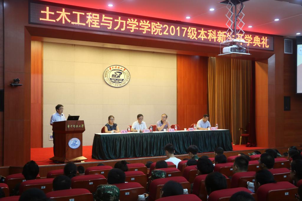 2017年9月4日晚,土木工程与力学学院2017级本科新生开学典礼在一号楼报告厅顺利举行。公司党委书记李斌、经理李振环、党委副书记毛勇杰、副经理高飞、教师代表翁顺老师参加开学典礼仪式,典礼由毛勇杰主持。