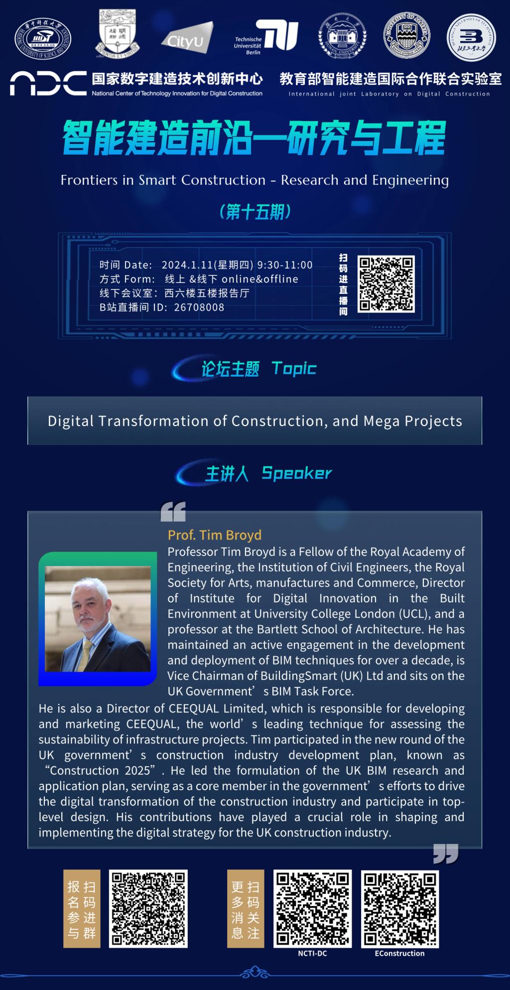 “智能建造前沿—研究与工程”论坛第十五期将在2024年1月11日(星期四)上午9:30-11:00于线下线上同步举办,欢迎进群交流分享!